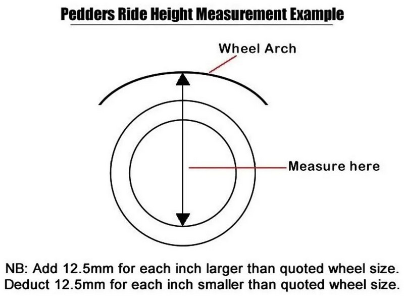 Tato sada je určena především pro silně naložené dodávky. Ve většině případů nebudou karavany pro tuto sadu vhodné, protože obvykle nejsou dostatečně těžké. Viz výše uvedená měření. Taková vozidla budou stále těžit z našich modernizovaných tlumičů Pedders část 151404, které omezí kolébání a poskakování na dobře naložených vozidlech.