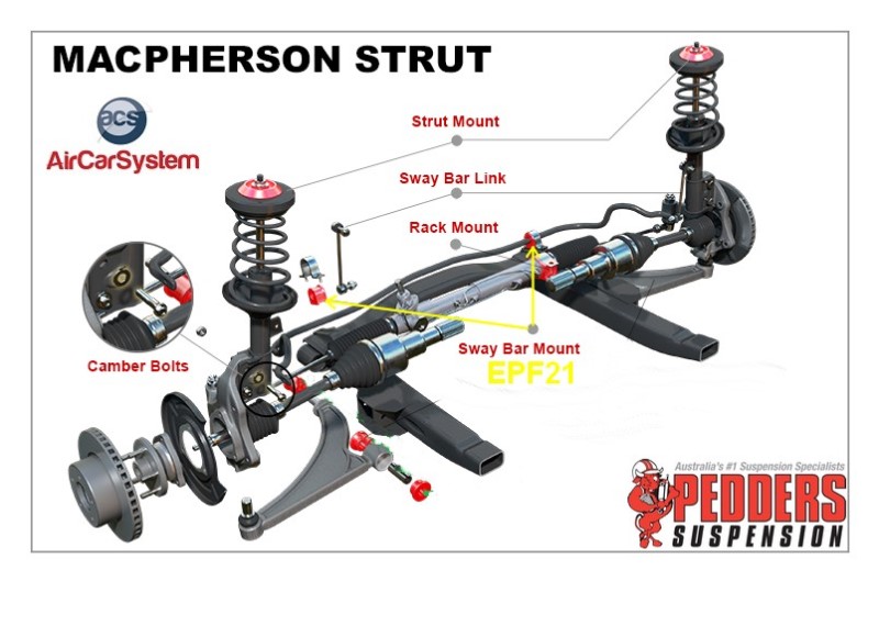 Polyuretanové průchodky Pedders jsou navrženy tak, aby umožňovaly pružnost pohybu celého podvozku při zachování správné montáže a vyrovnání jednotlivých částí. Peders polyuretanové pouzdra se vyznačují chemickými vlastnostmi, aby zajistily nezbytnou trvanlivost, výkon a pohodlí